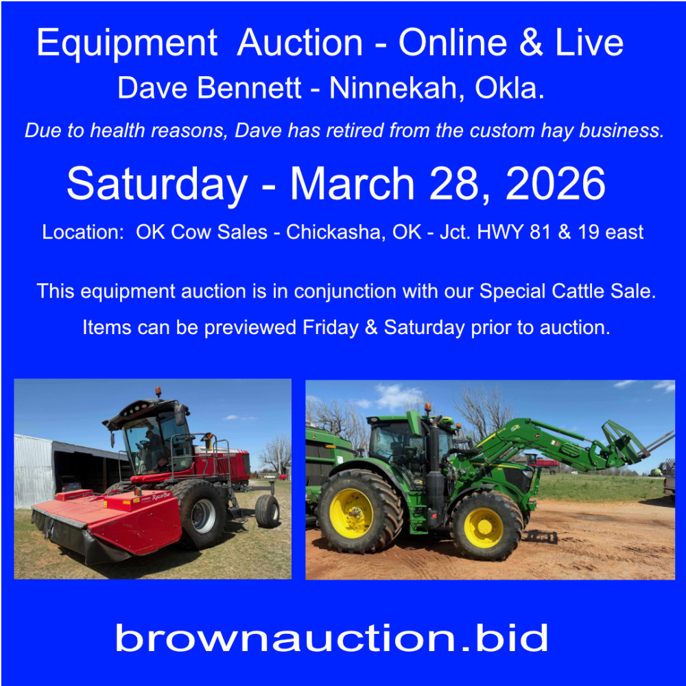 Items can be viewed at the auction facility of OK Cow Sale and Brown Auction and Real Estate on Friday and Saturday - March 27th and March 28th.